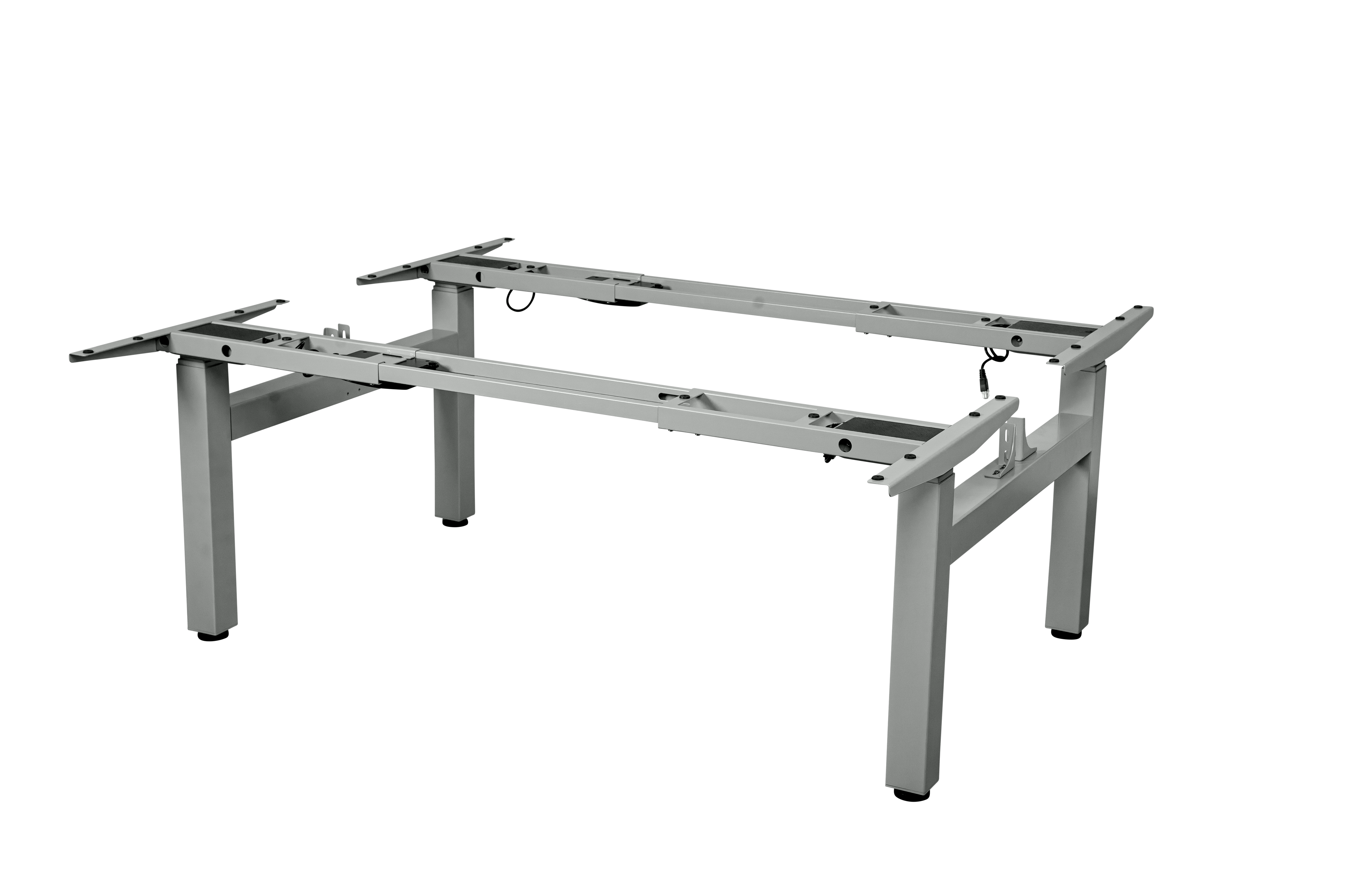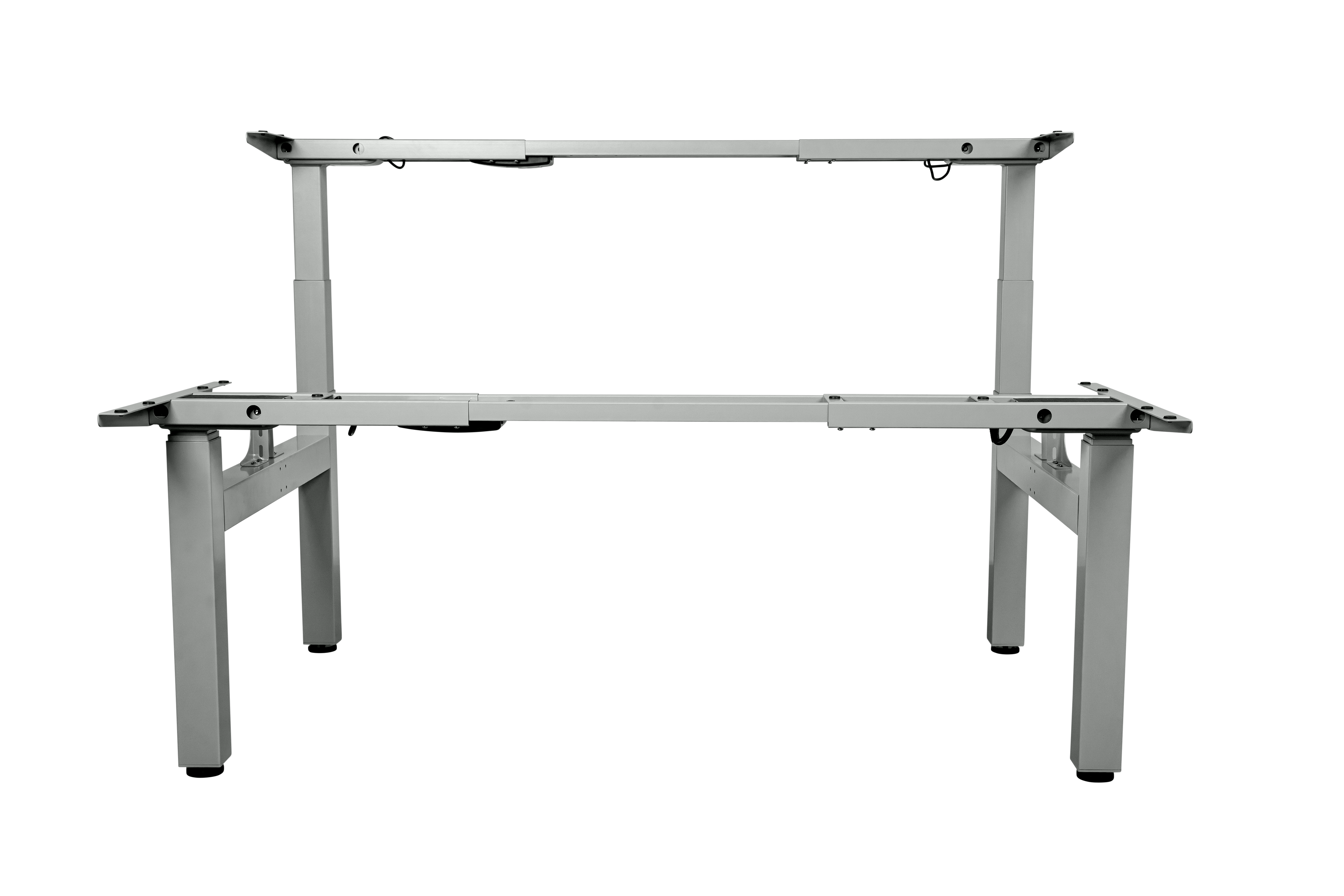 Met het Ergofy DUO zit-sta frame heeft u 2 werkplekken aan elkaar. Het frame heeft en 2-motorig bureauonderstel met 3 kolommen en een hoogteverstelling tussen 630 en 1280mm. Hiermee kan iedereen met een lengte tussen 150 en 200cm conform zijn optimale werkhoogte werken, zowel staand als zittend. Het frame heeft door de 2 krachtige motoren een fluisterstille verstelling. Door het 3-traps pootstel is het bureau erg stabiel, zelfs op de maximale hoogte.