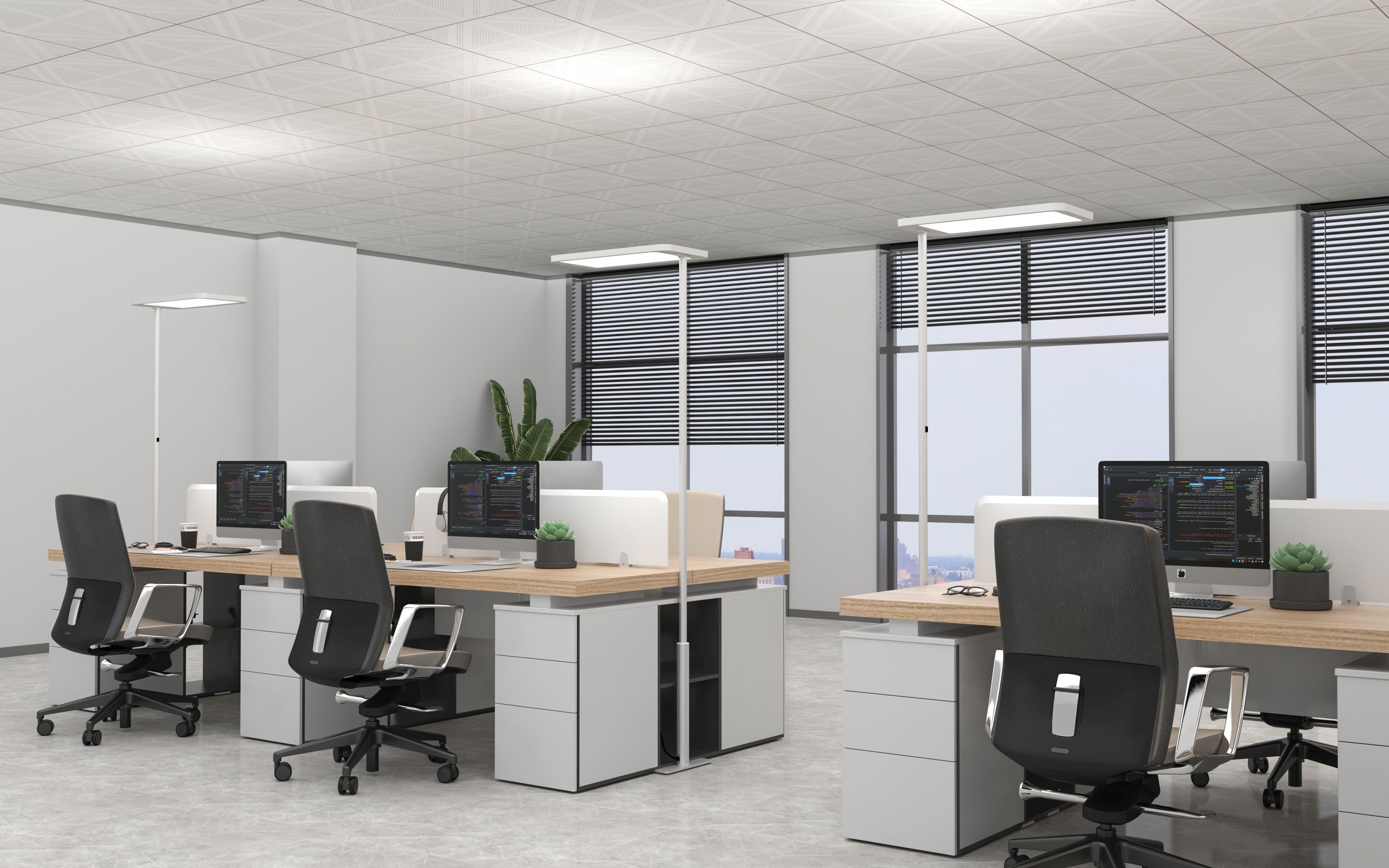 In moderne kantoren, vergaderruimtes of thuiswerkplekken is verlichting cruciaal voor zowel comfort als productiviteit. De vrijstaande vloerlamp Ergofy INLUMA 2 is speciaal ontworpen voor werkomgevingen waar visueel welzijn voorop staat. De lamp maakt gebruik van een wetenschappelijk uitgebalanceerde lichtverdeling – 70% comfortabel indirect licht en 30% gericht direct licht – om een ??uniforme, ruime en schitteringsvrije visuele omgeving te creëren, waardoor oogvermoeidheid bij de bron effectief wordt verminderd. Met een intuïtieve dimmer met drukknop kunt u de helderheid eenvoudig aanpassen zonder ingewikkelde handelingen, zodat u direct aan uw wisselende verlichtingsbehoeften kunt voldoen. Bent u op zoek naar een professionele armatuur die uw werkefficiëntie verbetert en tegelijkertijd een modern tintje aan uw ruimte toevoegt? Dan is de INLUMA 2 uw ideale keuze.